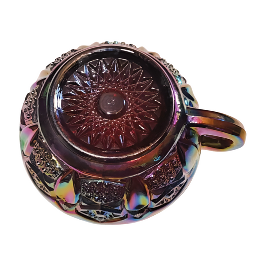 The Ares – Amethyst Carnival Glass Quintec Sawtooth Handled Nappy Bowl
